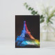 Paris Postcard of the Eiffel Tower lit up in rainbow colours.