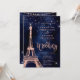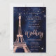 Eiffel tower rose gold glitter navy blue wedding invitation