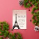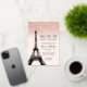 A modern, chic and glamourous sweet sixteen with a hand drawn rose gold glitter french Paris theme Eiffel Tower with rose gold glitter ombre gradient sparkles on an editable pastel blush pink background with real rose gold foil.