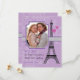 This sweet Save the Date as a Parisian theme for a romantic look. It features line illustration of the Eiffel Tower with two hearts and a pattern background. Purple, black and grey colour palette. Add your own picture and text. It's great for a destination wedding or a French theme wedding. It will fit a romantic couple that likes to travel, loves the French culture, or for couples from different cultural backgrounds.