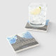The coasters are gorgeous, a quality feel and heavy weight. They look like a precious archeological find. A rustic stone juxtaposed with a modern floral black and white print. I like the way the print goes slightly imperfect on the cut stone edges giving them a kind-of natural beauty.