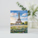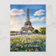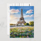 A picturesque view of the Eiffel Tower in Paris, France, with a vibrant flower field in the foreground and a beautiful sunrise sky. The tower stands tall against a backdrop of fluffy clouds, creating a magical and romantic scene