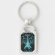 Eiffel Tower Teal Floral Swirls Metal Keychain