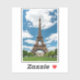 Paris France Eiffel Tower seen from Champ de Mars park with green lawn and visitors under sunny sky