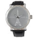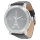 It's always time to visit the Eiffel Tower. White stylized illustration. The gray background color is customizable