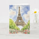 This watercolor artwork beautifully captures the iconic Eiffel Tower, towering above a bustling Parisian street scene. The soft, fluid brushstrokes evoke a light and airy atmosphere, with vibrant green trees and colourful market stalls lining the foreground. The detailed structure of the tower contrasts with the playful, impressionistic depiction of the crowd, creating a charming balance between architectural precision and artistic whimsy. The blue sky and scattered clouds add a serene backdrop, enhancing the romantic charm of the scene.