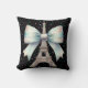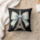 Eiffel Tower with bow on black on a bed of multicolored stones.