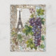 Eiffel Tower with vintage Grapes Holiday Postcard