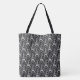 Large all-over-print brushed polyester tote bag with an image of white Eiffel towers and white flowers on black. See the entire Cancan Tote Bag collection in the PARTY FAVORS section.