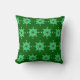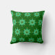 Throw pillow in a Far Eastern inspired mandala pattern in medium jade green, accented with light lime, aqua, and white, on a dark jade green background