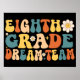 Retro groovy 8th eighth grade dream team funny teacher and student tee for kids, girls, boys, women and men. Awesome matching back to school outfit for dream team 8th eighth grade teachers and students. Cute groovy tee to start your 8th grade school year. Teacher and student funny dream team groovy matching apparel... Great 8th eighth grade appreciation present for dad, mum, son, daughter, friend, coworker, sister, brother, student and teacher. Grab it for Back to school, first day of school, 100 days of school..