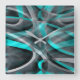 Eighties Turquoise and Grey Arched Line Pattern Square Wall Clock