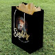 Eighty gold color script text on black birthday gift bag. Personalize this 80th birthday gift bag with your own photo of your birthday girl or boy and a message and or name, currently reads Eighty and Epic Wilson! Other years and matching items are available. © Original design by Sarah Trett for www.mylittleeden.com on Zazzle.