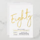 Celebrate your special day with this stylish 80th birthday party foil invitation. This design features a chic gold foil text "Eighty" with a clean layout. You can choose real foil stamp colour(Gold, Silver, Rose gold). More designs and party supplies are available at my shop BaraBomDesign.