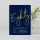 Celebrate your special day with this stylish 80th birthday party foil invitation. This design features a chic gold foil text "Eighty" with on a navy blue background. You can choose real foil stamp color(Gold, Silver, Rose gold). More designs and party supplies are available at my shop BaraBomDesign.