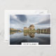 Photo postcard of historic Eilean Donan Castle on a quiet morning with reflection in the still water at the western coast of Scotland, near Isle of Skye with a white edge and in a white box the text 'Scotland'.