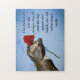 Eine Ritterhand mit roter Rose vor blauem Himmel und einem Spruch