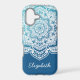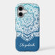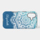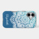 The elegant Eira Mandala Personalized iPhone Case in an Arctic glacier-inspired gradient of bright aqua to deep blue, is designed to be customized with your name or special words for a unique touch. Perfect for anyone who loves mystical boho style.