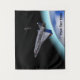 For future Jewish astronauts. A digital rendering of an El Al (Israel's iconic national air carrier) spacecraft entering orbit. The Earth is seen below; a space station floats in the distance. Add your own text.