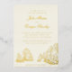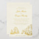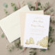 This destination wedding invitation features a drawing of the famous arch at Lands End in Cabo San Lucas, Mexico at the tip of the Baja peninsula. . All the important wedding details can be personalized. Colors include a golden sepia two tone graphic with coordinating text. Both the illustration and the text are in gold foil on an off white background.