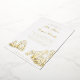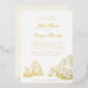 This destination wedding invitation features a drawing of the famous arch at Lands End in Cabo San Lucas, Mexico at the tip of the Baja peninsula. . All the important wedding details can be personalized. Colors include a golden sepia two tone graphic with coordinating text. Both the illustration and the text are in gold foil on a white background.