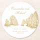 This wedding coaster has a line art drawing of el arco in Cabo San Lucas Mexico. Text at the bottom reads "Cabo San Lucas." You can personalize with your name and wedding date. This design coordinates with other designs from the El Arco Cabo San Lucas Wedding Collection.