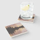 The coasters are gorgeous, a quality feel and heavy weight. They look like a precious archeological find. A rustic stone juxtaposed with a modern floral black and white print. I like the way the print goes slightly imperfect on the cut stone edges giving them a kind-of natural beauty.