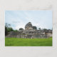 Postcard with an image of a watercolor painting of El Caracol, or the Observatory, a unique structure at pre-Columbian Maya civilisation site of Chichen Itza.