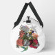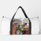 I actually had been searching other sites for a duffle gym bag and I couldn't find any. This one is just what I was looking for with all the features. The inside zip pocket, the outside mesh pocket and LOTS of room inside. Love the printing. Really like how the floral print turned out.