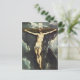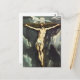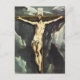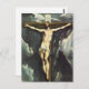 El Greco Christ On The Cross postcard. Oil painting on canvas from 1610. El Greco painted multiple depictions of Jesus Christ on the cross, this example is one of his later paintings. The saviour bleeds with his arms outstretched as the clouds break behind him with his face turned towards heaven in resignation. A great gift for fans of El Greco, religious painting, Jesus Christ, and catholic art.