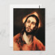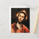 El Greco Jesus Christ postcard. Oil painting on canvas from 1600. El Greco devoted much of his work to religious themes, this depiction of Jesus Christ is among his most moving. The Saviour is presented looking upward towards heaven wearing a red cloak. His visage is peaceful and holy light emanates above his head. A great gift for fans of El Greco, Jesus Christ, catholic art, and religious painting.