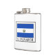 The flask itself is fine. It’s a cheap flask, obviously bought in bulk, however am prepared to overlook that. Given that it is a personalized item, I would have liked to have seen gift boxing instead of the generic packaging. Terrible printing, and/or quality. It’s a cheap, tacky vinyl. It is not cut straight and is also applied in a way that it is overhanging the bottom, causing the glue to catch on items and it will eventually roll and tear, damaging the wrap.
