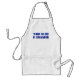 Cute, heavy duty apron with wide front pocket. Light to wear and easy slip on and off. Shorter length perfect for my 5 ft frame. I love it! Wording and print looks good with clear borders. Stitching is good, nicely finished.