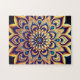 This colourful puzzle features an elaborate painted floral mandala that has a gold and blue with teal accents, and is shaded to give it 3-D dimension and pop out from the puzzle pieces. This flower mandala is set on an indigo blue background. Relax and get your zen on with this elegant boho chic spiritual mandala jigsaw puzzle .
