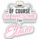 Elaine Of Course I'm Awesome I'm Elaine name in mixed black and pink sans and decorative cursive font lettering with scroll embellishments and topped with a golden crown.