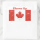 This is a red and white sticker decorated with the Canadian flag, that says Elbows Up. It's a great way for anyone to show support for Canada!