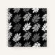Elder tree leaf silhouette in a surface pattern design with grey and white detail on a black background.