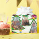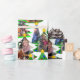 This wrapping paper has Christmas tree shapes with photos in them and Christmas bulbs scattered about. I also added her name to the paper.