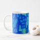 Abstract design in electric blue and aqua, taken from a screenprint based on 'bubbles'.