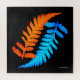 This design features a yin-yang styled pair of Japanese painted ferns, isolated on black, and digitally rendered in fiery orange and electric blue hues. With a leaf shape evocative of both feathers and flames, this most ancient of plants boasts a simple but dazzling and unique artistry.
