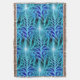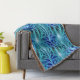 Electric Blue Luminous Fractal Repeating Pattern Throw Blanket