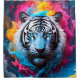 This striking shower curtain features a stunning portrait of a snow tiger illustrated in electric blue and white neon hues. The vivid colors create a mesmerizing effect, showcasing the tiger's fierce beauty and captivating gaze. The bold design adds a modern touch to any bathroom, making it a focal point that brings a sense of wild elegance to your space. This artistic representation captures the essence of the majestic snow tiger, transforming your bathroom into a unique and stylish retreat.