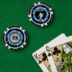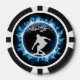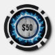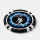 Dominate the table with the Electric Blue Skater Game Chip. This high-impact design features a stark grey silhouette of a skateboarder within a blazing blue halo on a black background, exuding extreme energy. The classic black and white edge of the chip adds a professional feel. The back is fully customisable, allowing you to imprint your preferred denomination or any custom text, making these chips ideal for poker nights, gaming groups, or as distinctive collectibles for those who live life on the edge.