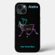 A bright, neon-like rendering of a caribou (Rangifer tarandus), also known as a reindeer. Text reading, "Alaska" appears in glowing blue and white. Add your own additional text. Inspired by the Northern Lights.