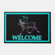 A bright, neon-like rendering of a caribou, also known as a reindeer along with text reading, "WELCOME." Inspired by the Northern Lights.