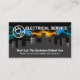 The whole city block is affected by a power outage. A bright electric cloud lightning is powered up by a silver power plug logo you can use. This electric current illuminates your business name. Near the base of the card lies a slogan caption to publicise your services alongside the contact details. You can change the caption remarks to the slogan to suit your own publicity needs.