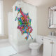 A fun and colourful abstract floral and dragonfly design to brighten up your bath.