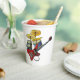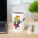 An electric guitar in red with a drum set behind it. This design looks really effective on these Paper Cups
