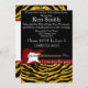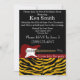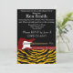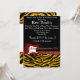 Perfect fun Birthday Invite , in a present of friends. This gold tiger animal print card #4will make any Birthday the best ever to remember, with the black and gold invitation. Red electric guitar and a red stripe across. Use our easy template to customise with your party details.