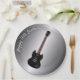 Custom paper plates for a teenager's birthday with black, electric guitar on silver grey with one line of custom text. Gradient grey with white text, this design is perfect for the teen, or tween, boy. His name can be added also.